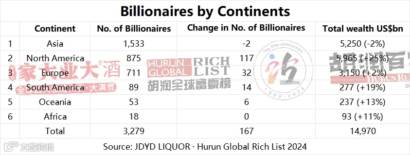 亚洲拥有接近全球一半的亿万富豪,北美增长最快。