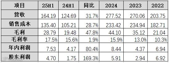 中创新航2025年上半年实现营业收入164.19亿元,同比增长31.7%;毛利率达17.5%,同比提升1.9个百分点。期内利润为7.53亿元,同比增长80.4%;归属于股东的净利润为4.70亿元,同比增长169.3%。