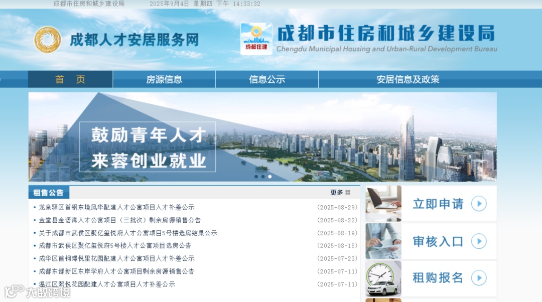 申请方式:通过成都市住房和城乡建设局官网或天府市民云APP提交资格申请,后续关注房源发布。