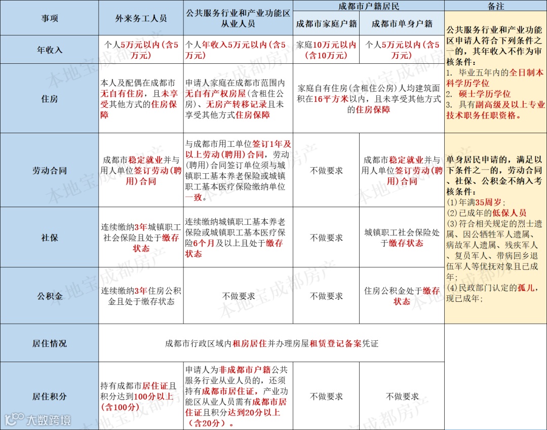 - 在成都无自有产权住房,且未享受其他住房优惠政策。