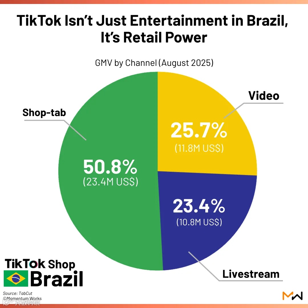 作为拉美地区最大的电商市场,巴西在TikTok Shop的布局中正展现出强劲增长潜力。根据风投机构Momentum Works发布的报告,自2025年5月正式上线以来,TikTok Shop巴西站GMV实现爆发式增长:5月平台GMV仅为100万美元,7月攀升至2570万美元,环比增长25倍;8月进一步增至4610万美元,环比增幅达79%,已超过新加坡站去年上半年的月均GMV水平。