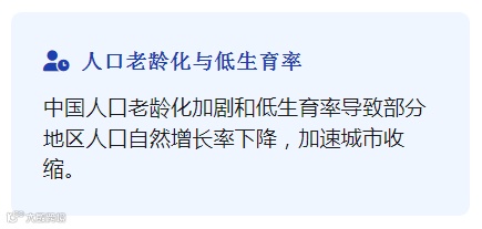 人口老龄化与低生育率:全国性人口结构变化导致部分地区自然增长率下降,加速城市收缩进程。
