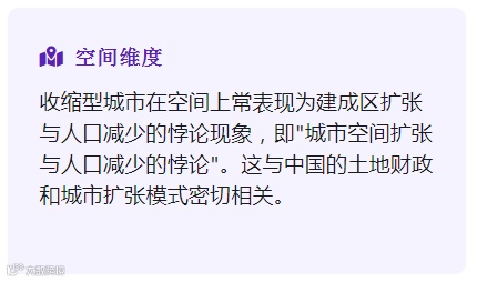 - 收缩型城市是中国城镇化进入“下半场”的标志性现象,体现从“扩张”向“精明增长”的转型;