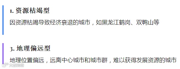 - 地理偏远型:远离城市群,难以获得发展资源,如西部边远地区城市;