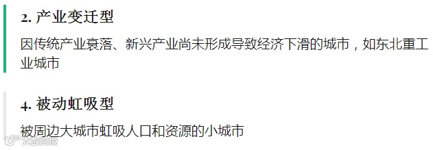 - 产业变迁型:传统产业衰退而新兴产业未形成,如东北部分重工业城市;