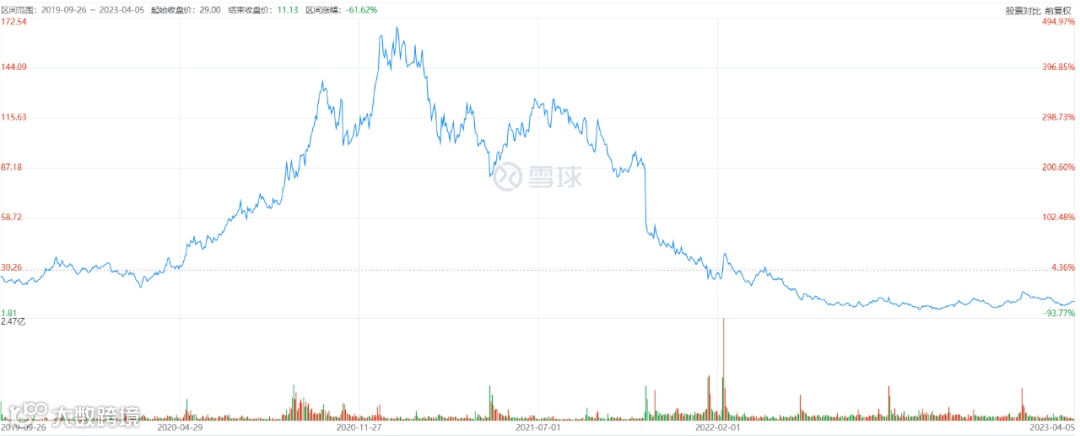 但从2021年至今,Peloton市值大幅下跌,现市值仅剩40亿美元左右(4月6日收盘数据),几乎蒸发了90%。