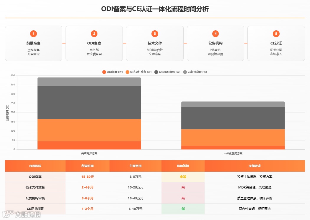 在时间安排上,建议企业从ODI项目立项之初就同步启动CE认证材料的准备工作,尤其是针对技术文件和临床评估部分,做到早准备、早沟通。这样不仅可以规避因资料准备不充分而导致的认证延误,还能在整体项目推进中实现时间和资源的最大优化。