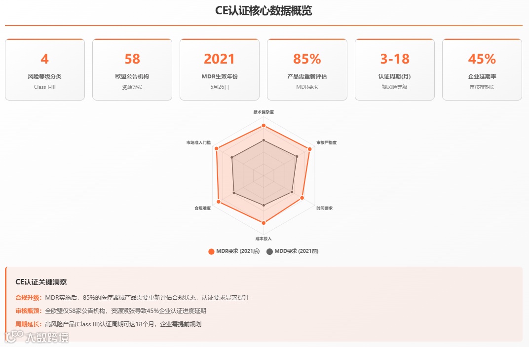 在医疗器械企业出海欧洲的过程中,CE认证被公认为进入欧盟市场的“入场券”。CE标志不仅代表产品符合欧盟医疗器械法规(MDR)的安全和性能要求,更是监管机构和客户信赖的质量保障。然而,很多企业误以为CE认证只是一个简单的标志申请,实际上,这背后是一套严密且复杂的合规体系。