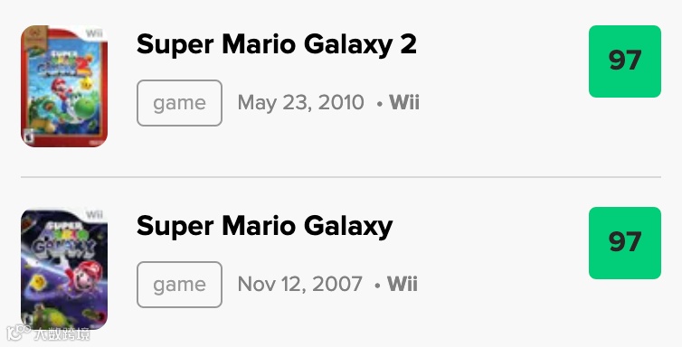 《超级马力欧银河》与《超级马力欧银河2》在Metacritic上的媒体平均分高达97分,多款媒体给予满分评价,称其在游戏设计、创新性和关卡构建方面树立了当时难以超越的标杆,代表了马力欧系列的顶级水准。