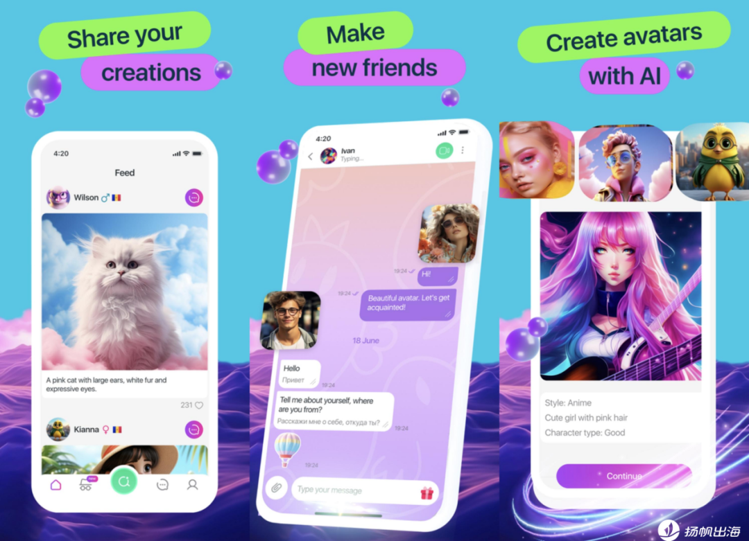 这种文化差异使得欧美人长期习惯于以真实身份进行社交。因此,当一款借助AI虚拟头像进行社交,同时又可随时卸下“面具”,展现真实自我的应用出现时,正好契合了他们对于新奇体验和真实社交的需求。