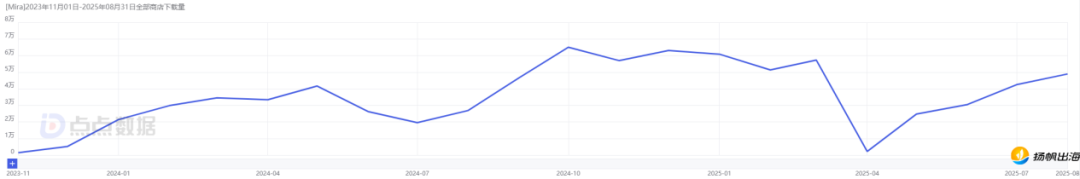 (自上线以来Mira全商店总下载量,图源:点点数据)