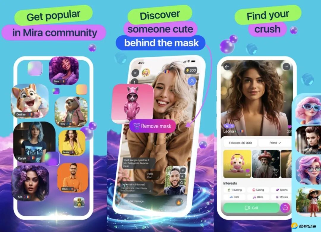 Mira最独特的一点在于,它实现了从匿名社交到真实社交的无缝切换。最初,用户双方都戴着AI生成的“面具”进行交流;随着聊天逐渐深入、彼此愈发熟悉,两人可以共同选择“摘下面具”,通过视频的方式,看到对方真实的样貌。整个过程需经双方同意方可完成,确保了隐私与自主性。