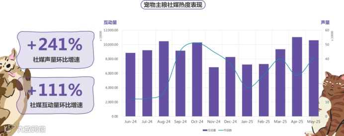 宠物主粮相关内容在社媒上的关注度显著上升,声量环比增长超200%,反映出强烈的内容消费需求。