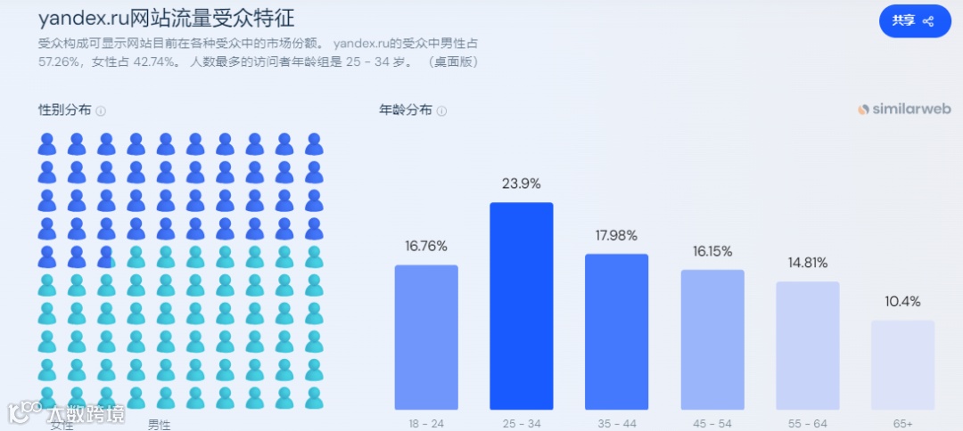 用户基数:Yandex在俄罗斯是最受欢迎的搜索引擎之一,拥有庞大的用户基数,占据主导地位。