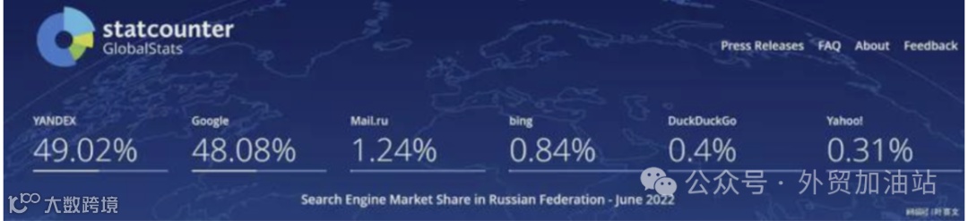 Yandex这家公司成立于1997年,总部在莫斯科,已经在俄罗斯市场耕耘了25年,是俄罗斯最大的搜索引擎,目前在俄罗斯市场占比49%; -