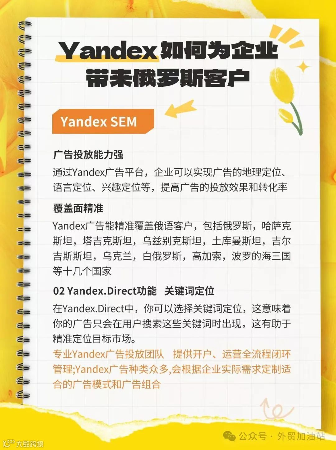 广告市场:企业通过在Yandex上投放广告,可以在俄罗斯市场获得更多的业务机会。Yandex的强势地位使得广告在该平台上能够触达广泛的俄罗斯用户群体。