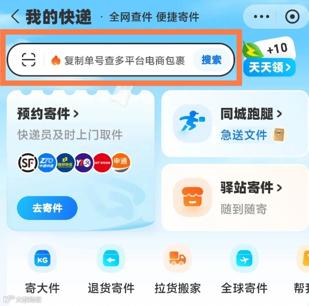 第1步:打开支付宝,进入“我的快递”功能(如未显示,可通过搜索或“更多”找到)。