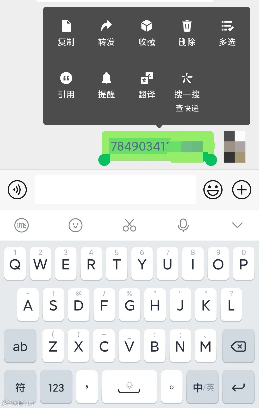 在微信聊天界面长按快递单号,选择“搜一搜”,系统将自动识别并展示该运单的物流信息。