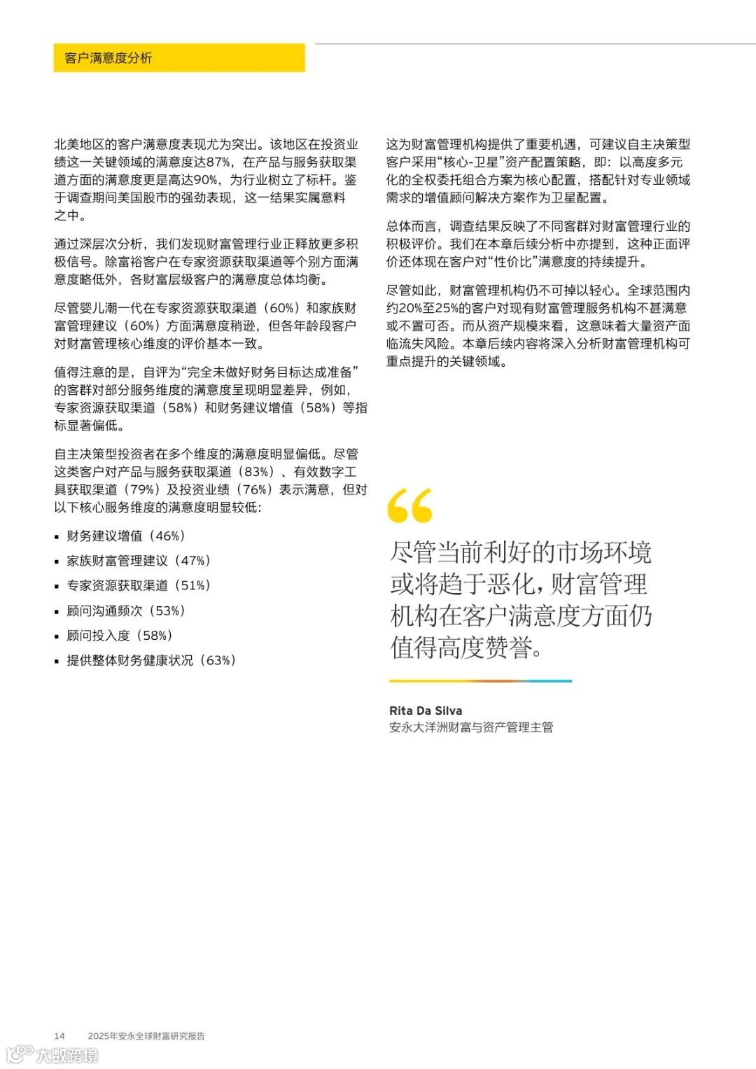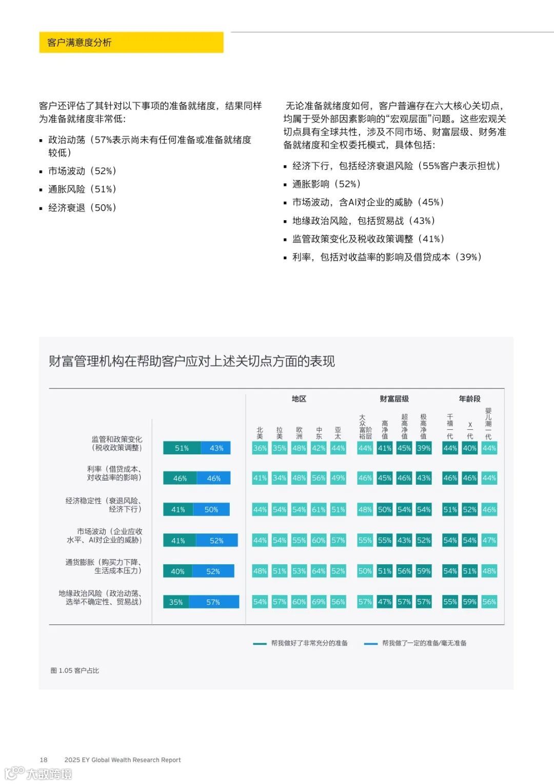 全球29%的客户计划更换主要财富管理机构,其中千禧一代比例达46%,亚太与中东地区超三分之一客户考虑更换。满意度已无法保障客户留存。