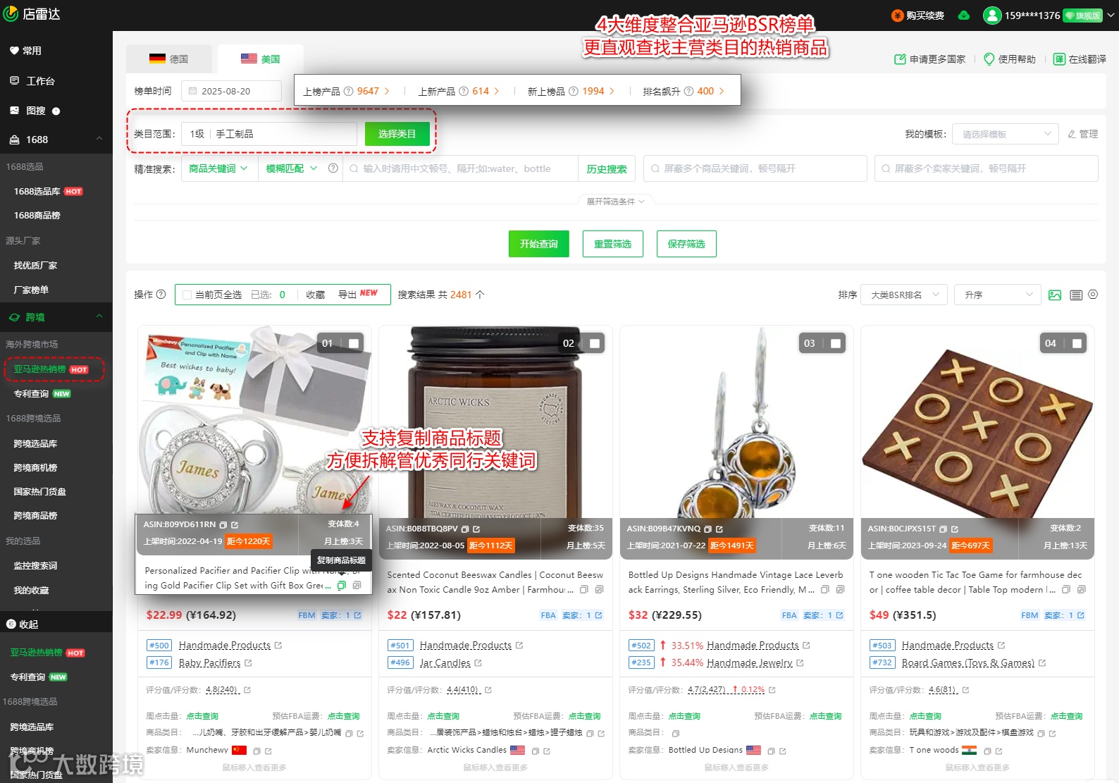 ✅ 店雷达亚马逊热销榜通过整合近30天热销上榜产品、上新品、新上榜品、排名飙升4大维度亚马逊BSR榜单,可以更加直观查找主营类目的热销商品,是销量的间接反映,排名高说明销量和综合表现高,那么这类优秀同行的标题就非常有参考意义。