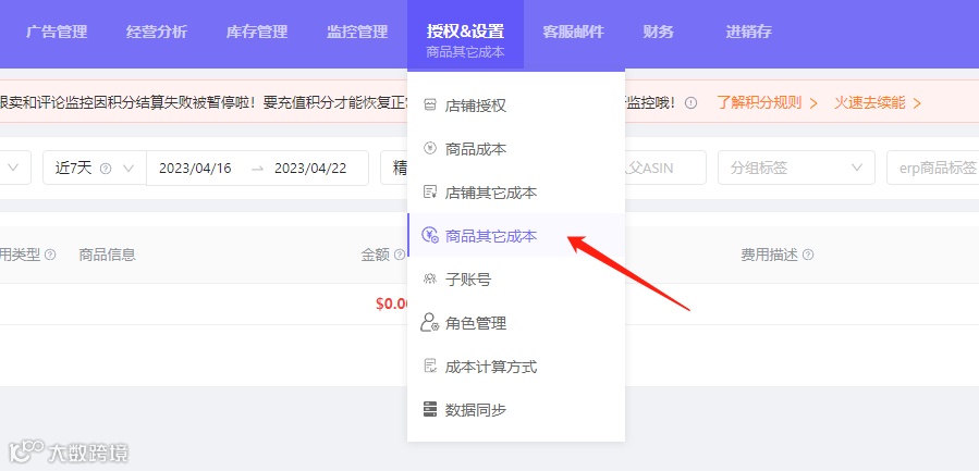 固定成本算法:通过商品成本功能,手动添加对应日期的订单商品成本。