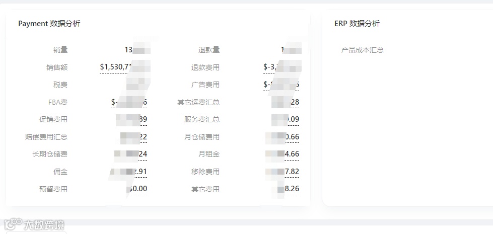 但是这种核算方式一种是人工统计容易出错,另一方面数据看起来比较乱不能一目了然的看到各种费用占比,需要使用公式统计出来。所以目前基本使用ERP帮助店铺分析利润情况。