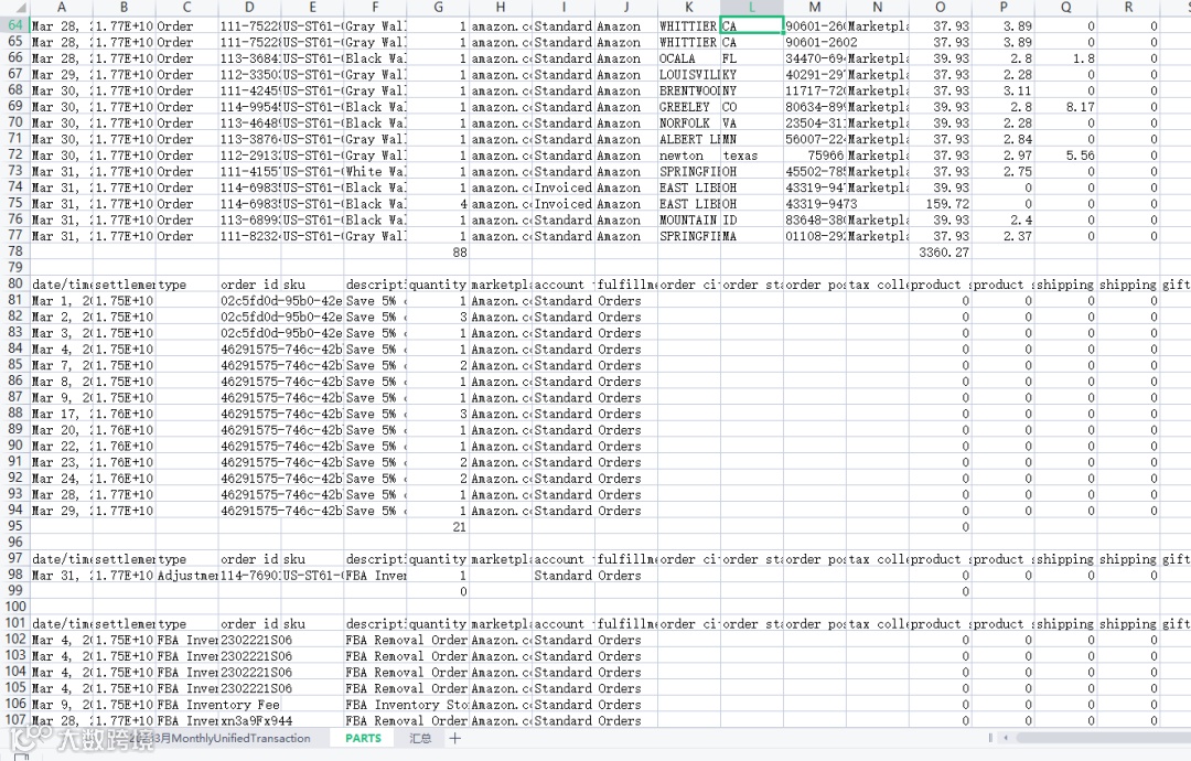 针对个人卖家来说如何核算月度利润是非常头疼的,之前都是通过店铺后台的付款一栏下载付款报告,然后进行数据分类整理: