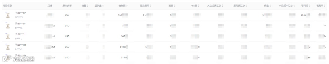 然后可以从:店铺维度,sku维度,asin维度,父体维度来查看利润情况:
