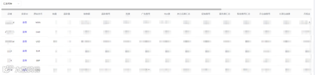 如果绑定多个店铺的话,还可以根据不同店铺,不同站点进行具体成本及利润数据的查看: