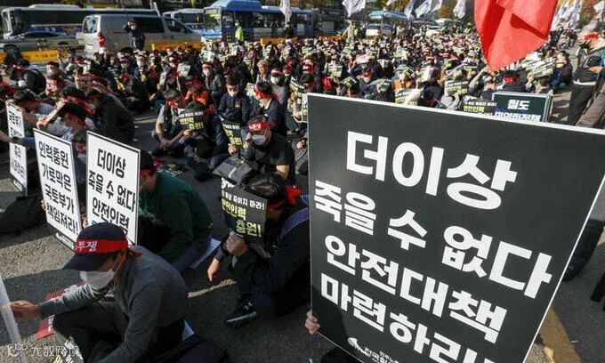 韩国全国范围内举行大规模的总罢工,预计这将给民间带来不便,并使国内工业陷入停顿