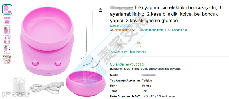 据我们的团队了解,这款串珠机已在2022-04-14在美国申请并在2024-10-29获得批准,目前正受到外观专利的保护。因此,在销售类似产品时,我们需特别留意,以免侵犯他人知识产权。