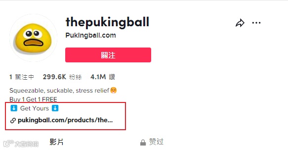 以最火的呕吐球账号(thepukingball)为例,在TikTok主页就挂上了自家独立站链接,为独立站引流。