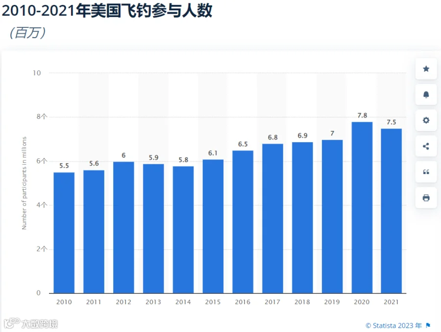 根据Grand View Research的研究,2022 年全球飞钓服装及配饰市场规模为31亿美元,预计2023至2030年的年均复合增长率为4.1%。