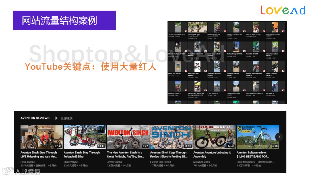 Jair在分析Aventon的流量结构时提到,YouTube提供了50%以上的流量来源。