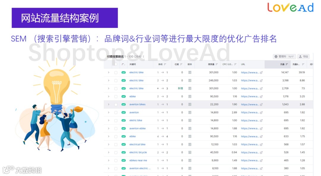 在分析完电动车市场结构之后,Jair以美国户外运动品牌Aventon为例,为卖家们带来了标杆品牌流量结构分析。