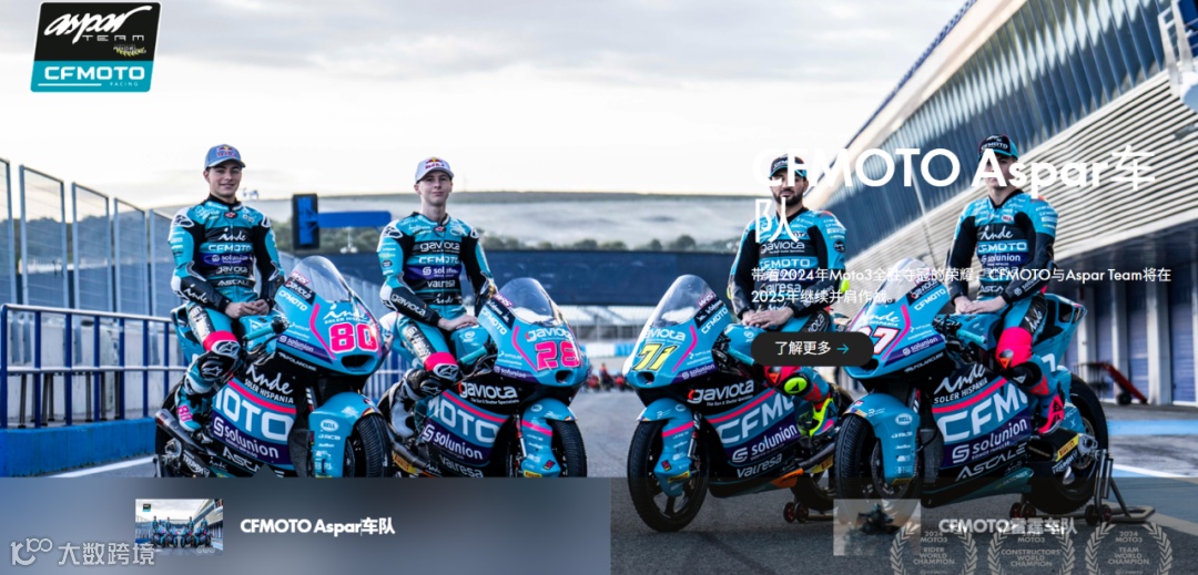 品牌建设方式多元化。春风动力秉持“以赛促研、以赛创牌”的发展理念,2024赛季一举斩获MOTOGP的Moto3 250cc组别车手、车队和制造商三项总冠军。