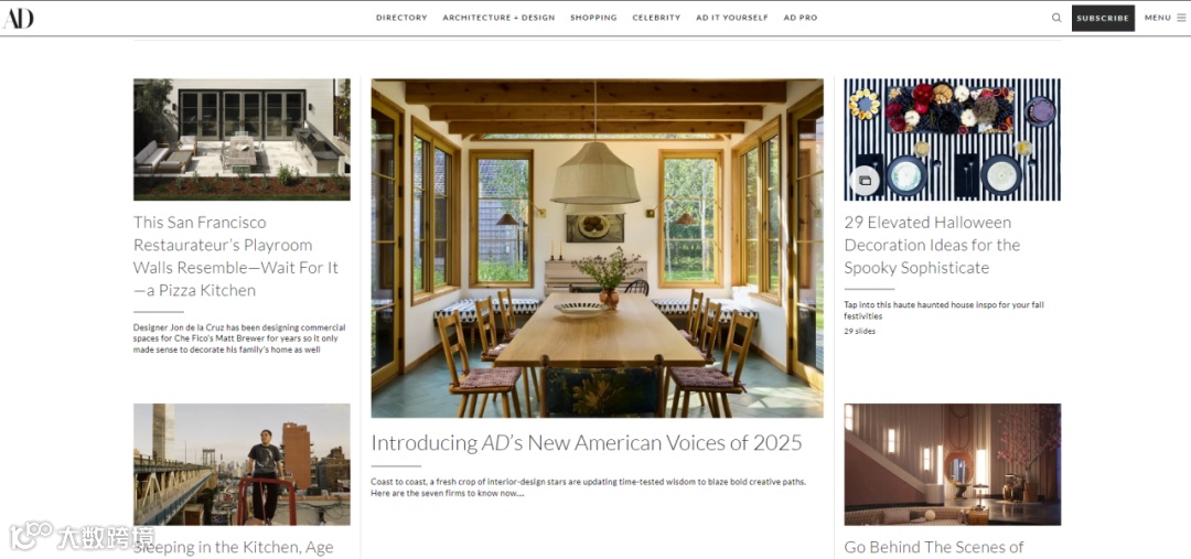 Architectural Digest主要面向美国,最初是一份加州的行业季刊。如今,AD的线上媒体专为设计爱好者和专业人士提供室内设计和建筑领域的原创报道,涵盖名人豪宅、购物推荐、DIY指南等多维内容,在全球室内设计领域中拥有不可估量的影响力。