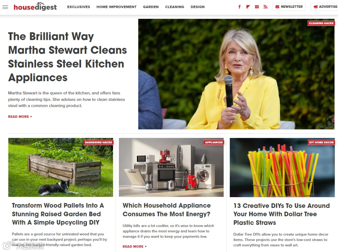House Digest是家居园艺界极其知名的垂直博客,仅月度活跃用户就高达700万人次,隶属于美国互联网公司Static Media。其内容涵盖房地产、装修、设计、DIY项目、园艺等多元资讯和专家建议,同时还高度聚焦Home Depot(家得宝)等大型零售商的最新产品。