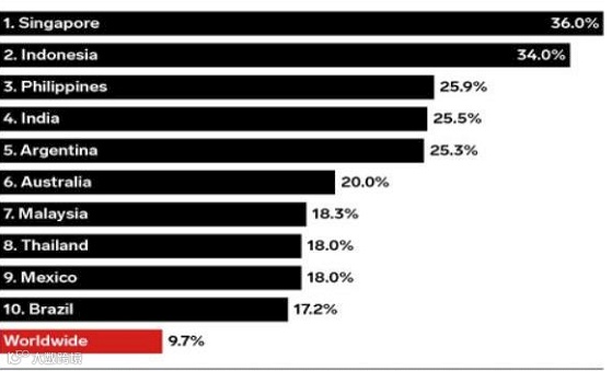 位居榜首的是新加坡,今年的数字销售额增长了 36%。与此同时,印度尼西亚将增长 34%,菲律宾将增长 25.9%。排在第四位的是印度,占 25.5%,由此可见,东南亚的电子商务市场发展存在巨大潜力。