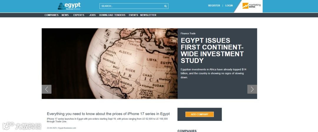 埃及大型企业目录,收录逾40万家企业,支持按名称、分类、品牌或关键词搜索,提供电话、邮箱、网站等联系信息。该平台在非洲多国有分站,便于按目标市场切换使用。