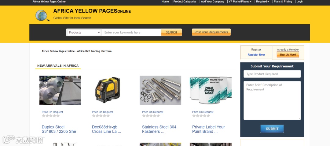 覆盖全非洲的综合性在线黄页,收录超过25万家企业信息,包含企业名称、网址、邮箱、电话等数据,适合开展跨国客户开发。