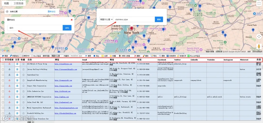 谷歌地图在非洲普及率高,本地替代平台较少。通过输入产品或公司关键词,可快速定位相关企业,并获取其电话、邮箱、官网、社交媒体链接以及地理位置和实景图像,提升客户验证效率。