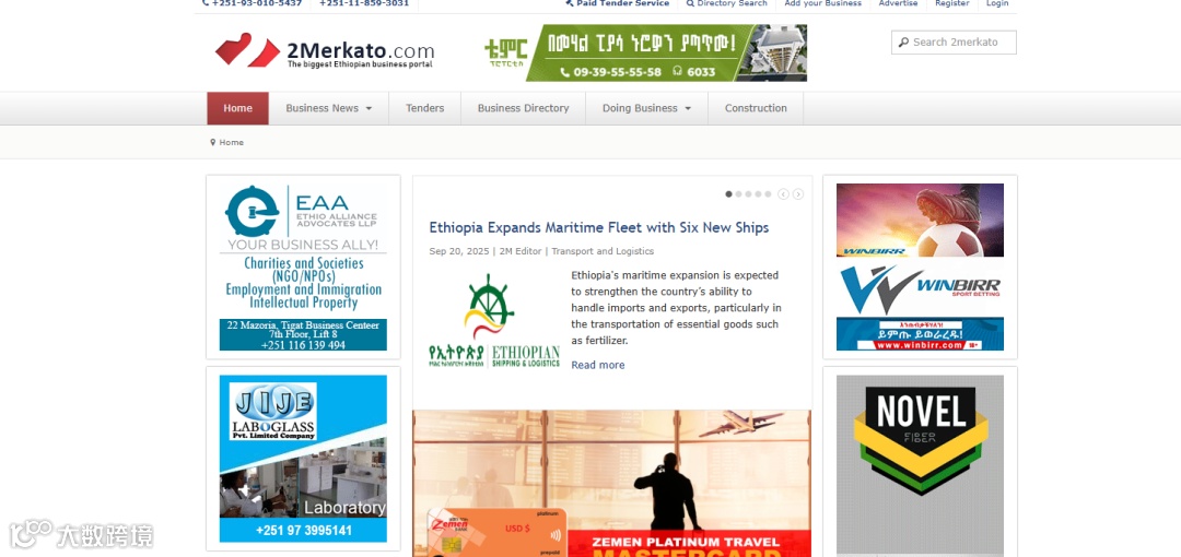 埃塞俄比亚最大的商业门户之一,集公司展示、产品发布与招投标公告于一体,尤其适合有意参与当地政府采购或工程项目的企业。