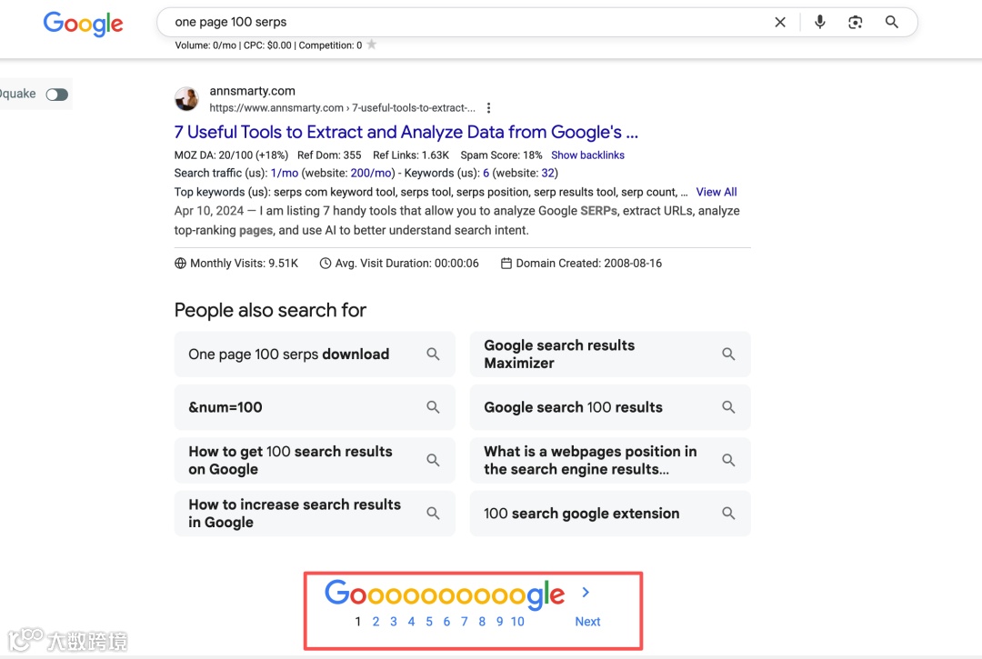 目前市面上大部分SEO工具,包括SEMRUSH,AHREFS都是通过一次性的抓取100个结果来追踪关键词的排名。