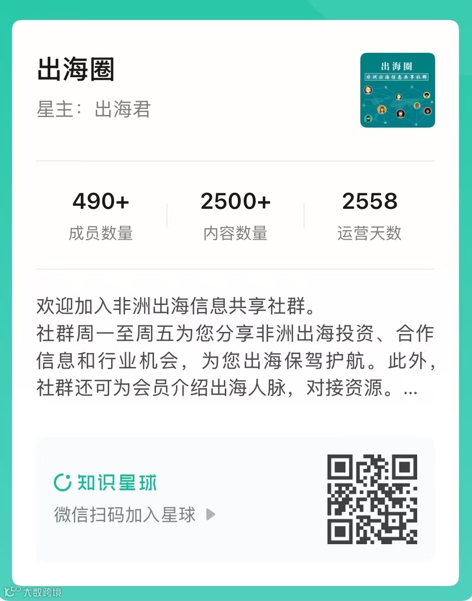 每日更新非洲市场动态,涵盖投资机会、合作项目、风险预警、资源对接与人脉拓展等内容,助力中国企业高效布局非洲市场。