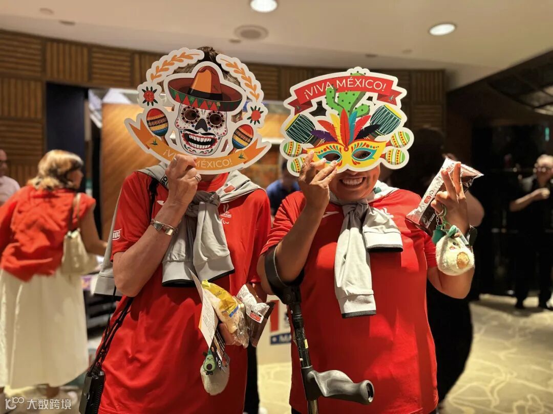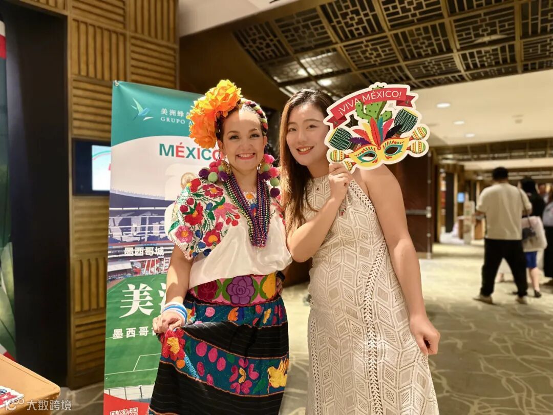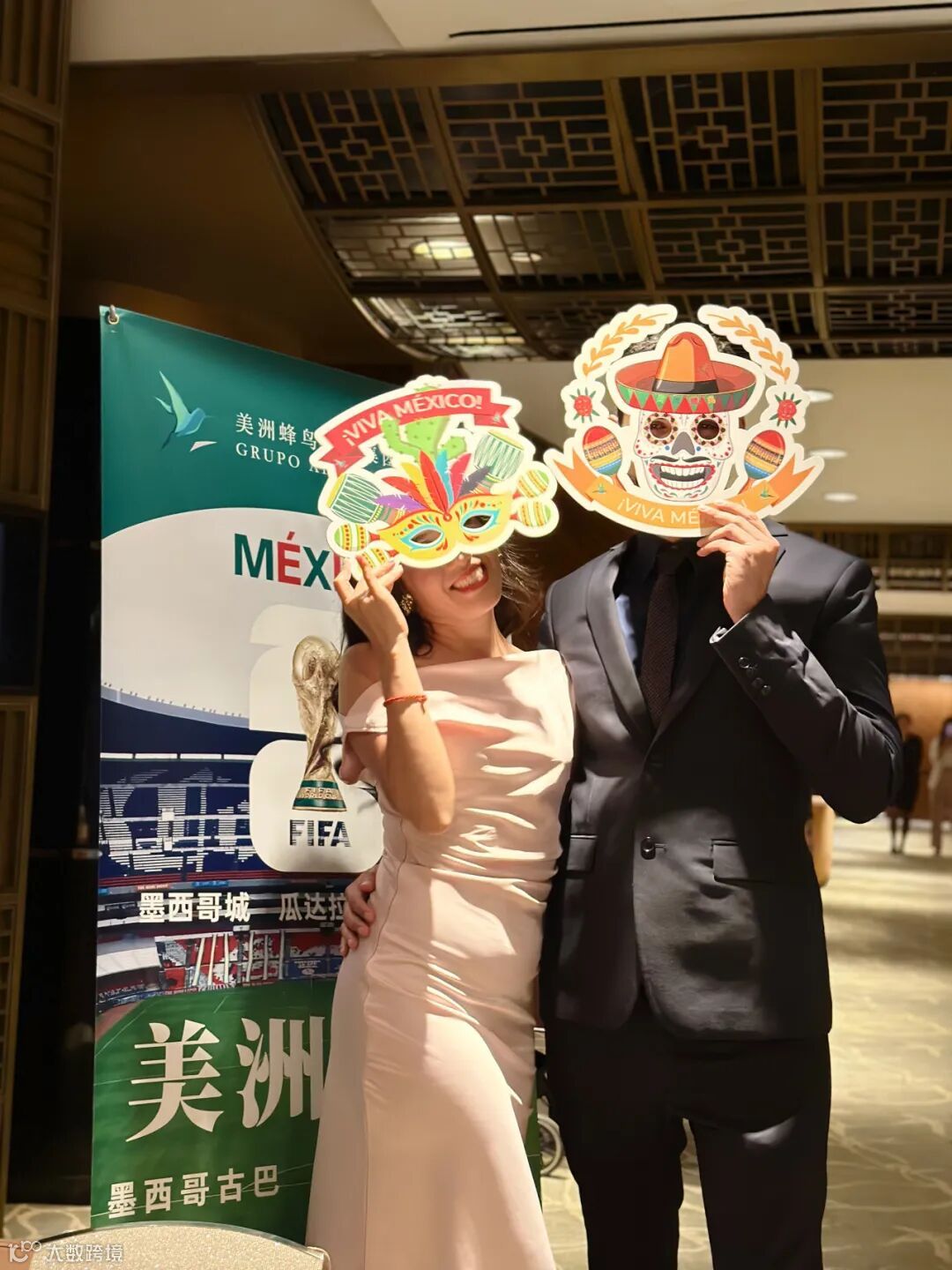 活动现场,乐队演奏与传统舞蹈营造出浓厚节日氛围,塔可与龙舌兰酒香气四溢,尽显墨西哥文化底蕴。赛艇世锦赛残运会墨西哥运动员及多位嘉宾驻足美洲蜂鸟展位,佩戴特色面具合影留念。同期参展企业包括宾堡集团、海南航空等知名墨企。