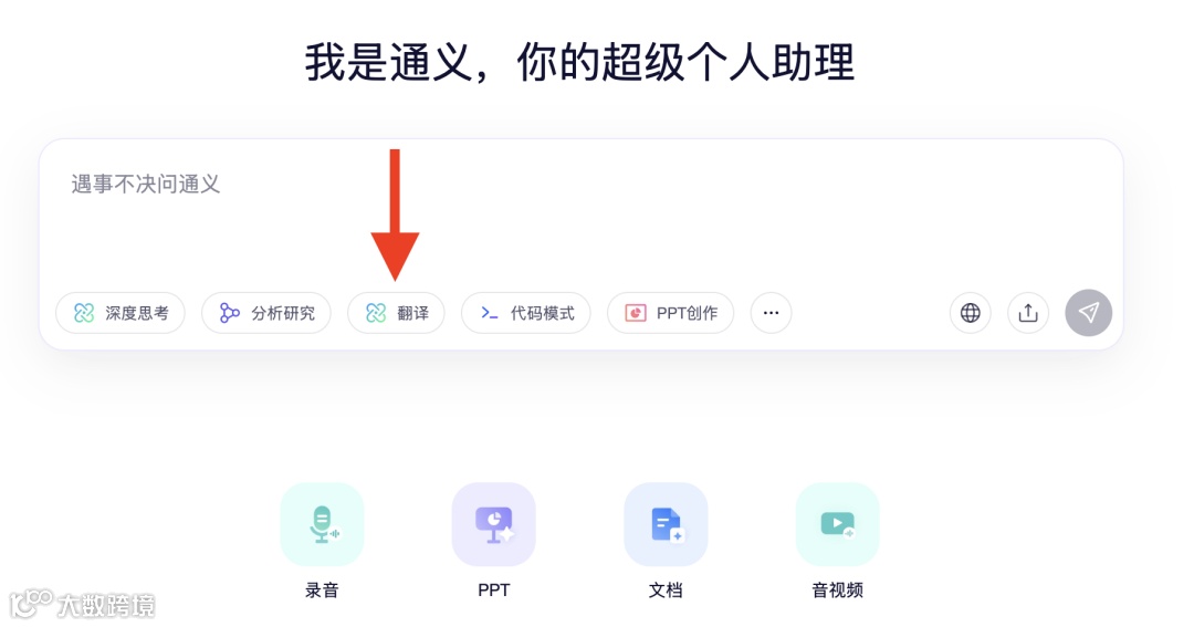访问通义官网,点击页面中的「翻译」功能进入操作界面。