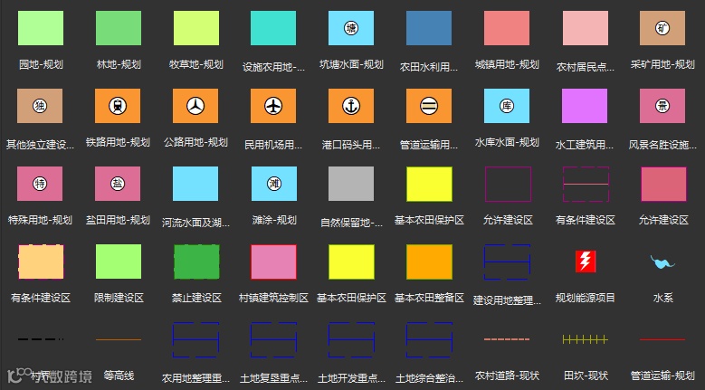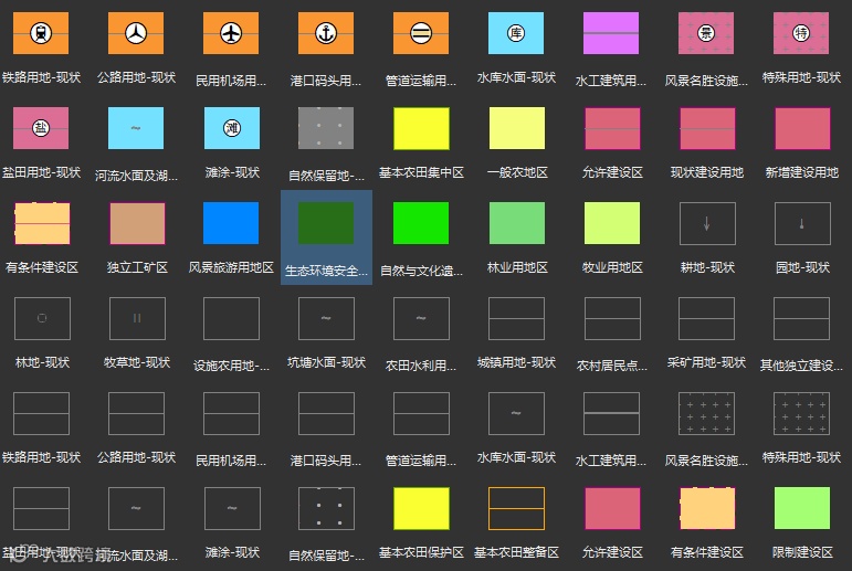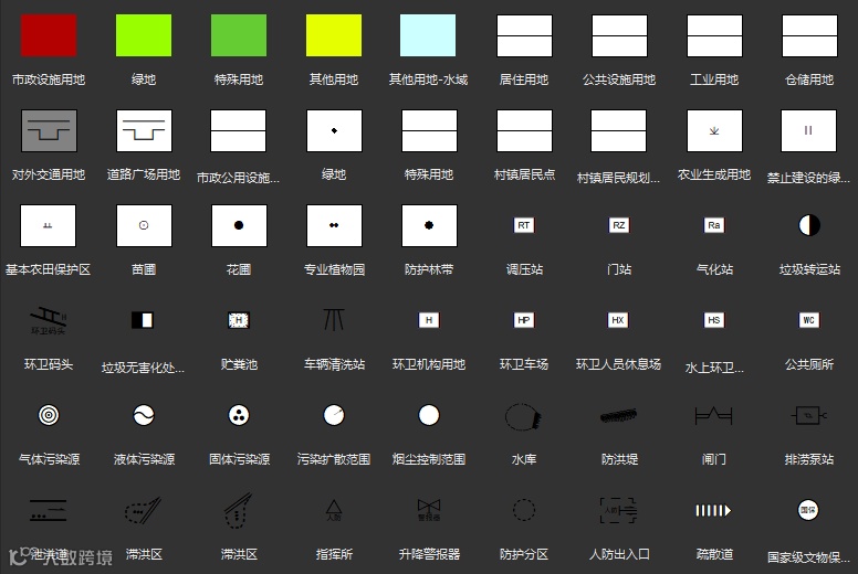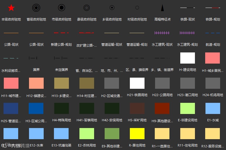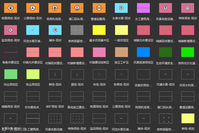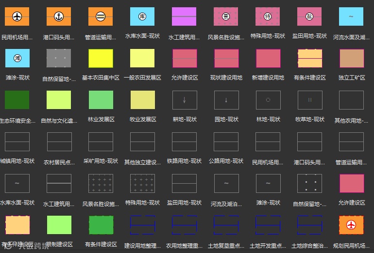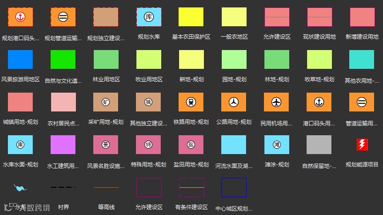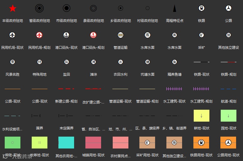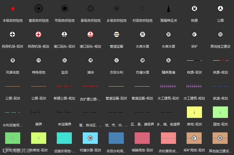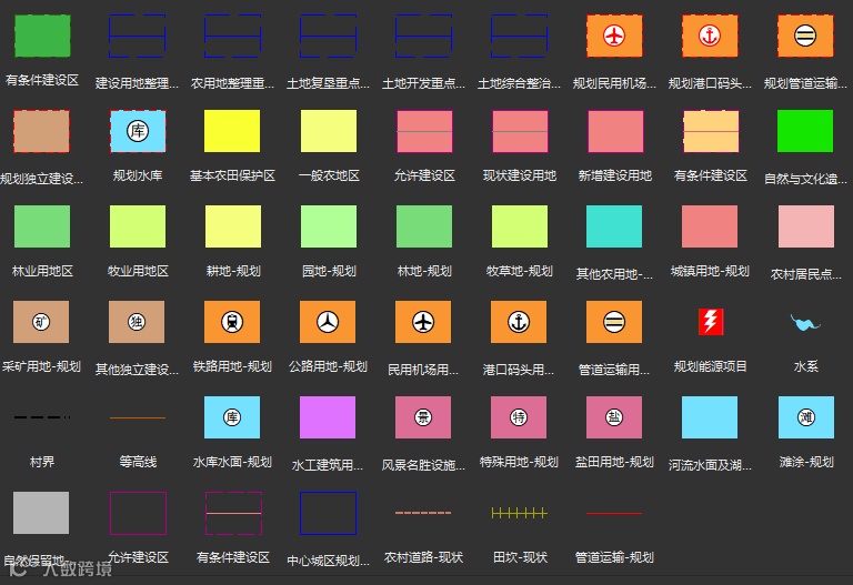 分级提供土地利用规划专用符号,适配不同行政层级规划编制需求。