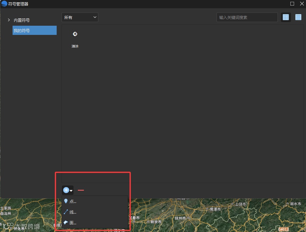 打开【符号管理器】→选择【我的符号】→点击“+”号添加点、线、面符号。