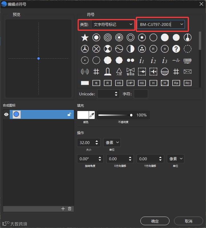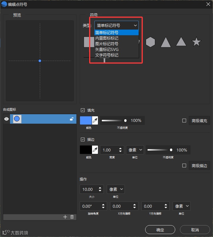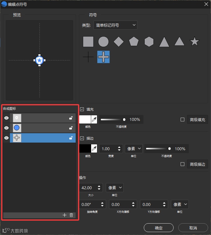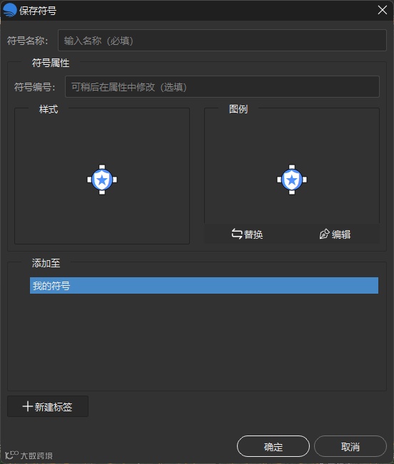 通过叠加多个图层调整样式、大小、颜色,合成完整符号后点击确定并保存,可设置名称、编号及图例样式。